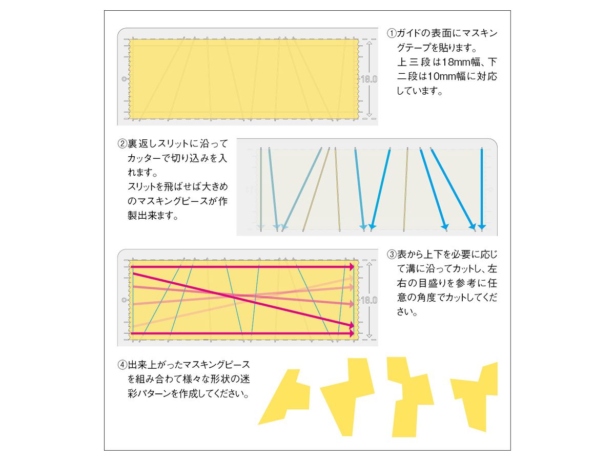 カクカクと折れる線に沿ってマスキングテープを切るストレスを軽減し、効率的に作業が出来ます。