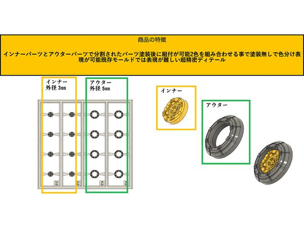 インナーパーツとアウターパーツで分割されたパーツ