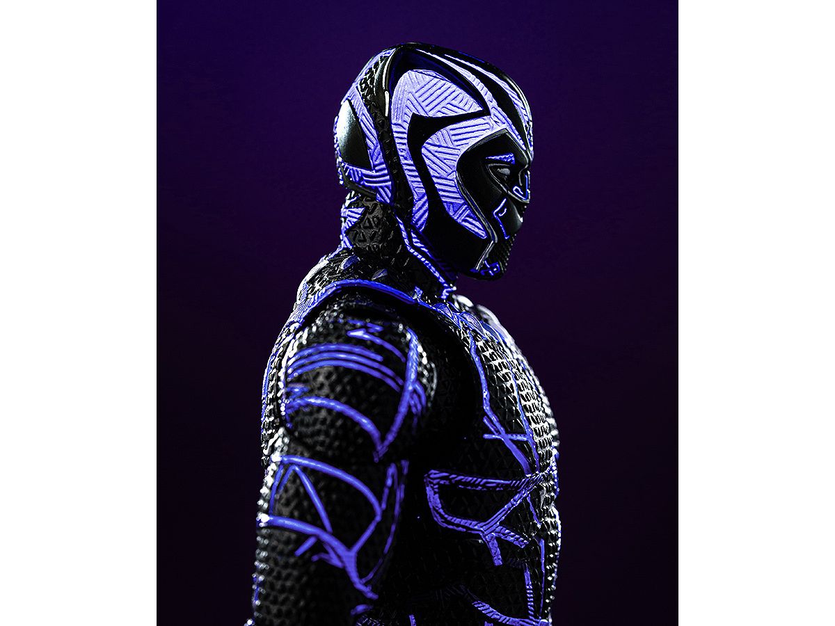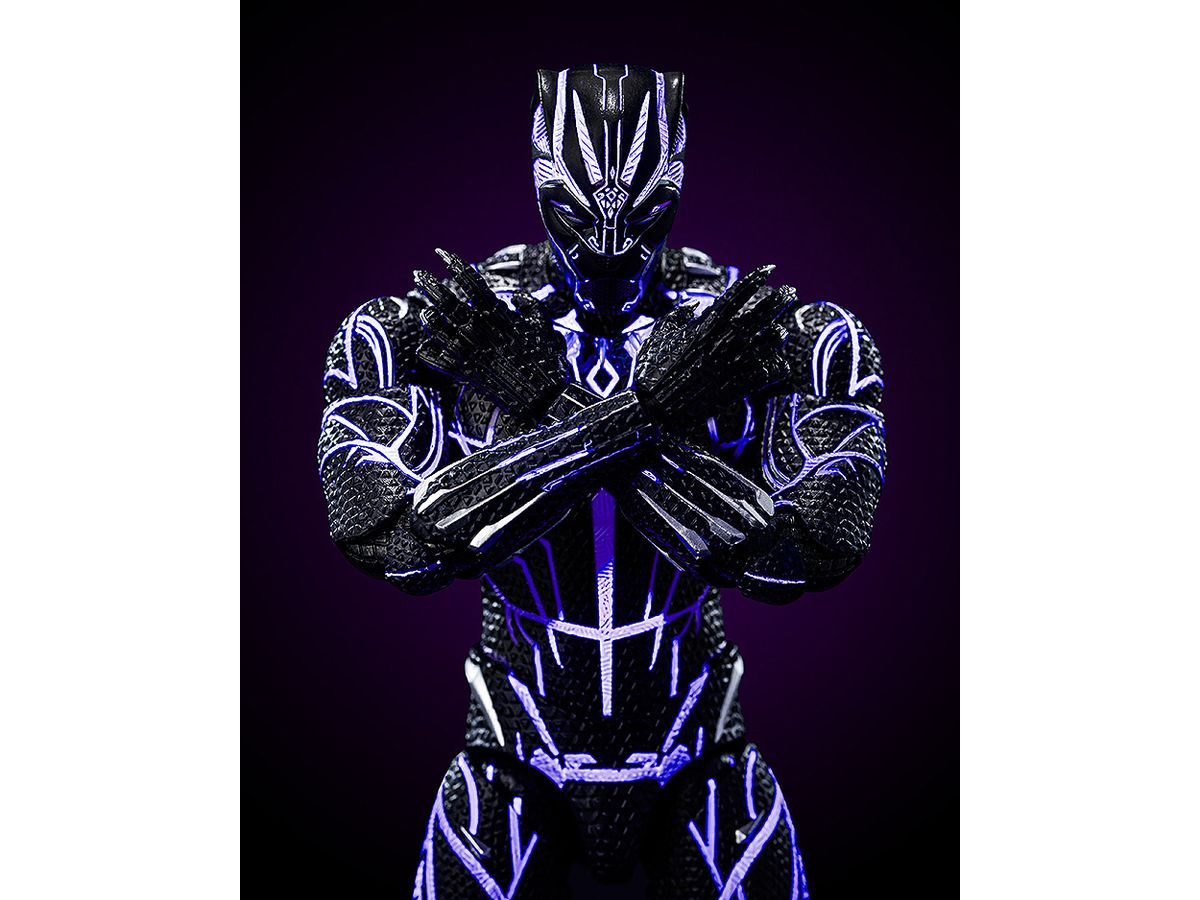 全身にわたる細部へのこだわりが、ワカンダの王の姿を忠実に再現しています。