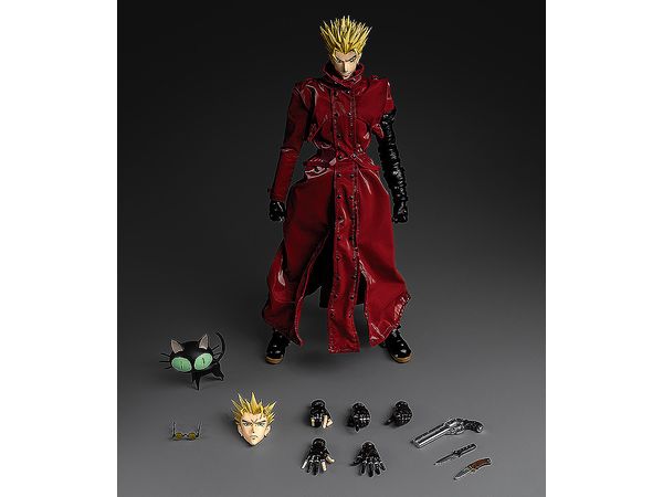 付属品として、別表情の交換式顔パーツ×全2種類(通常の顔とシリアス顔)、サングラス、ヴァッシュの銃、ナイフ×2、「黒猫様」、そして交換式手首パーツ×4種類も同梱。