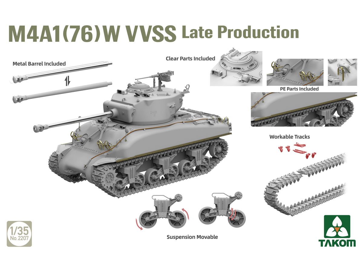 湿式弾薬庫を持つ後期型車体に、76mm砲を装備したT23砲塔を搭載したM4A1(76)Wは、1944年7月から実戦投入されました。