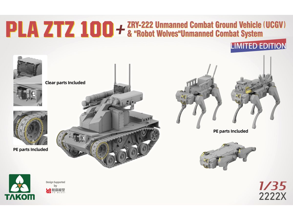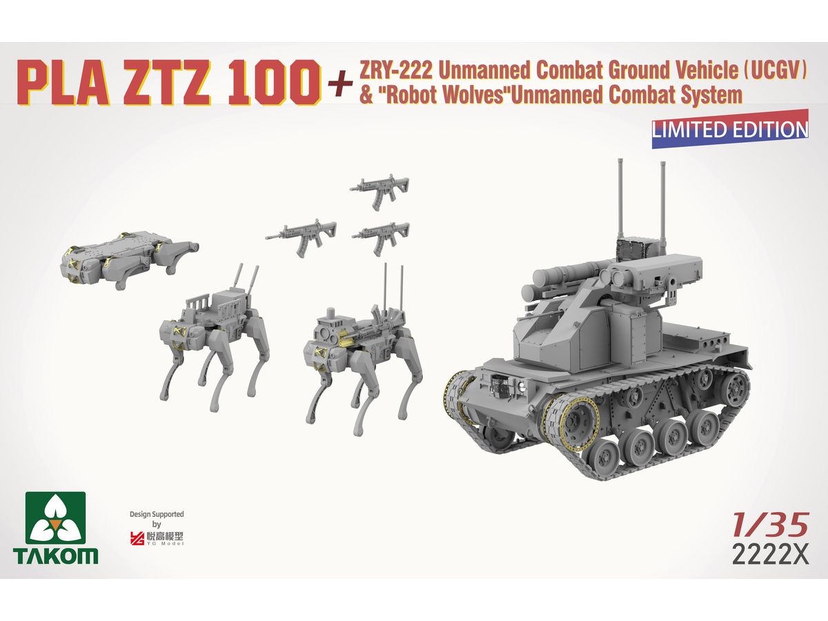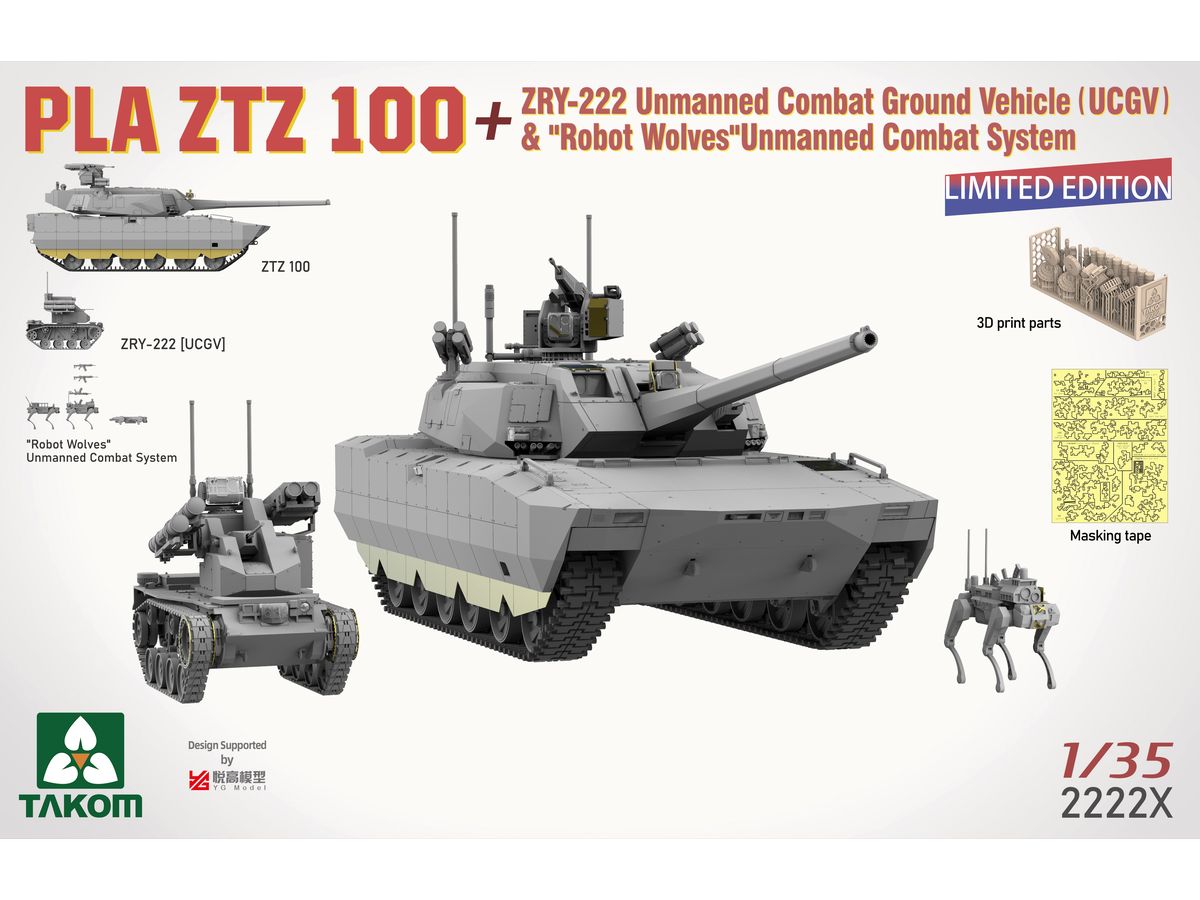 1/35 PLA ZTZ 100 主力戦車 + ZRY-222無人戦闘地上車両 (UCGV) & ロボットウルフ 無人戦闘システム (限定版)
