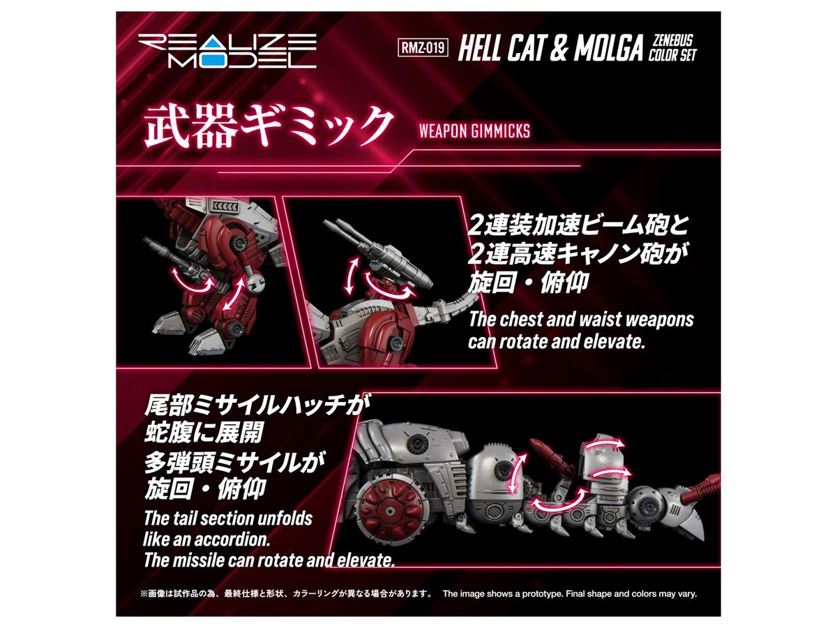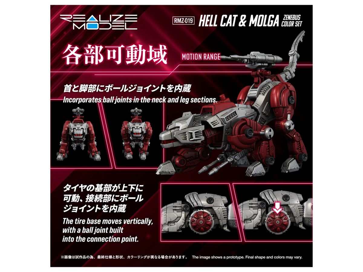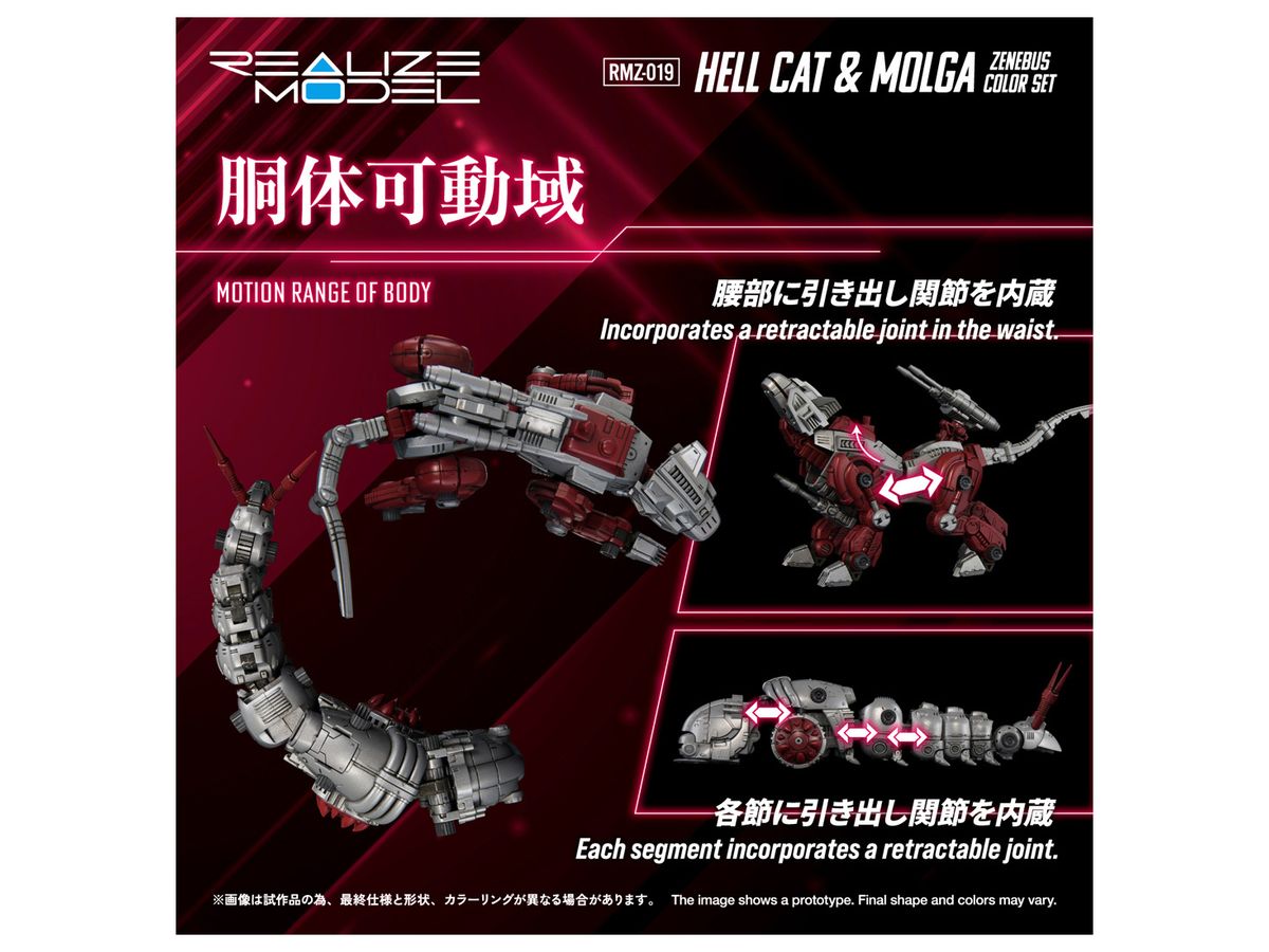専用に設計された可動機構によって全身が可動し、ヒョウ型ゾイド、イモムシ型ゾイド特有の躍動的なアクションポーズをとることが可能。