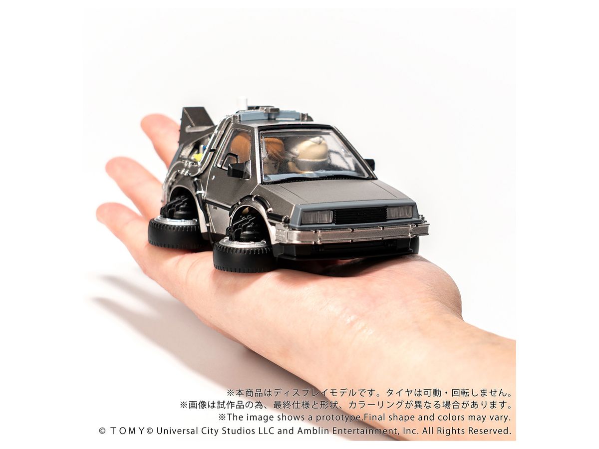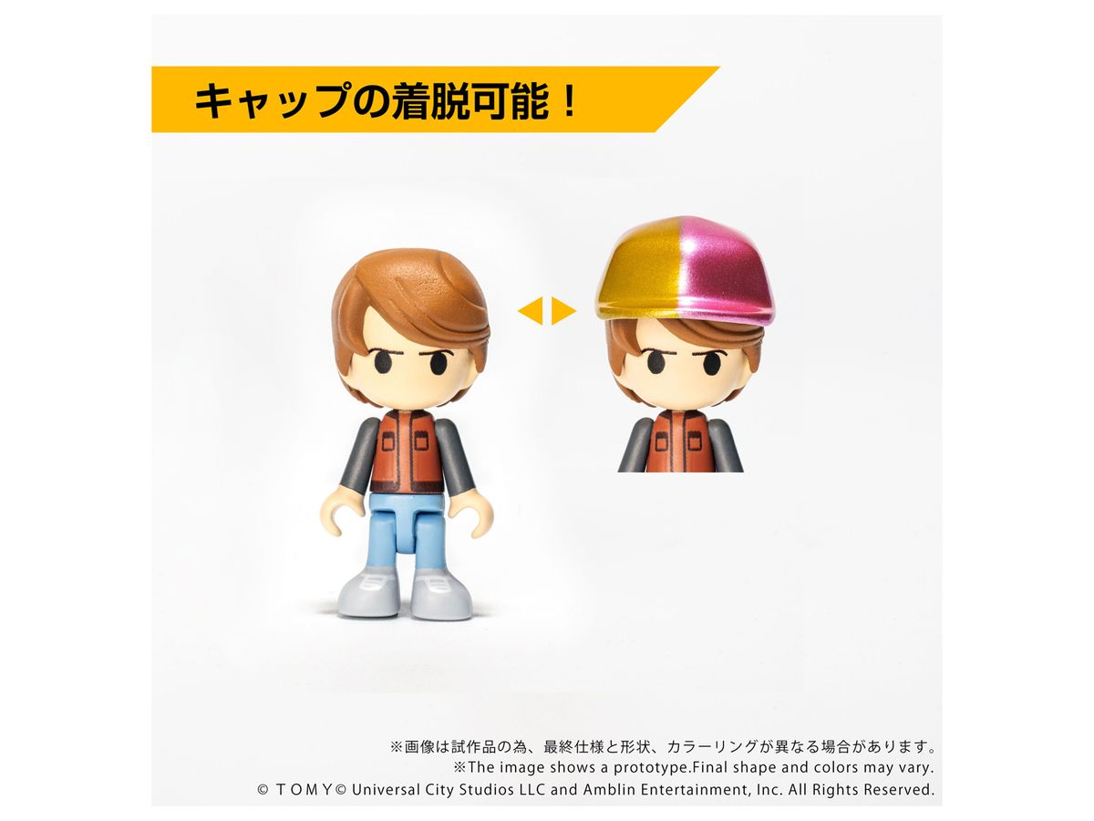 映画『バック・トゥ・ザ・フューチャー(Part2)』より、タイムマシンとドク、マーティ(キャップ付き)のセットです。