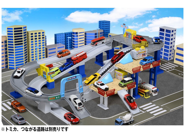 別売りのトミカタウンシリーズとつなげて大きなトミカタウンの街並みをつくることも出来ます。