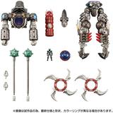 ・両肩の鋭利なカッターが特徴的なシルエットの人型ボディには 様々なアクションポーズ表現を可能とする 可動域の広い関節可動機構を搭載。
