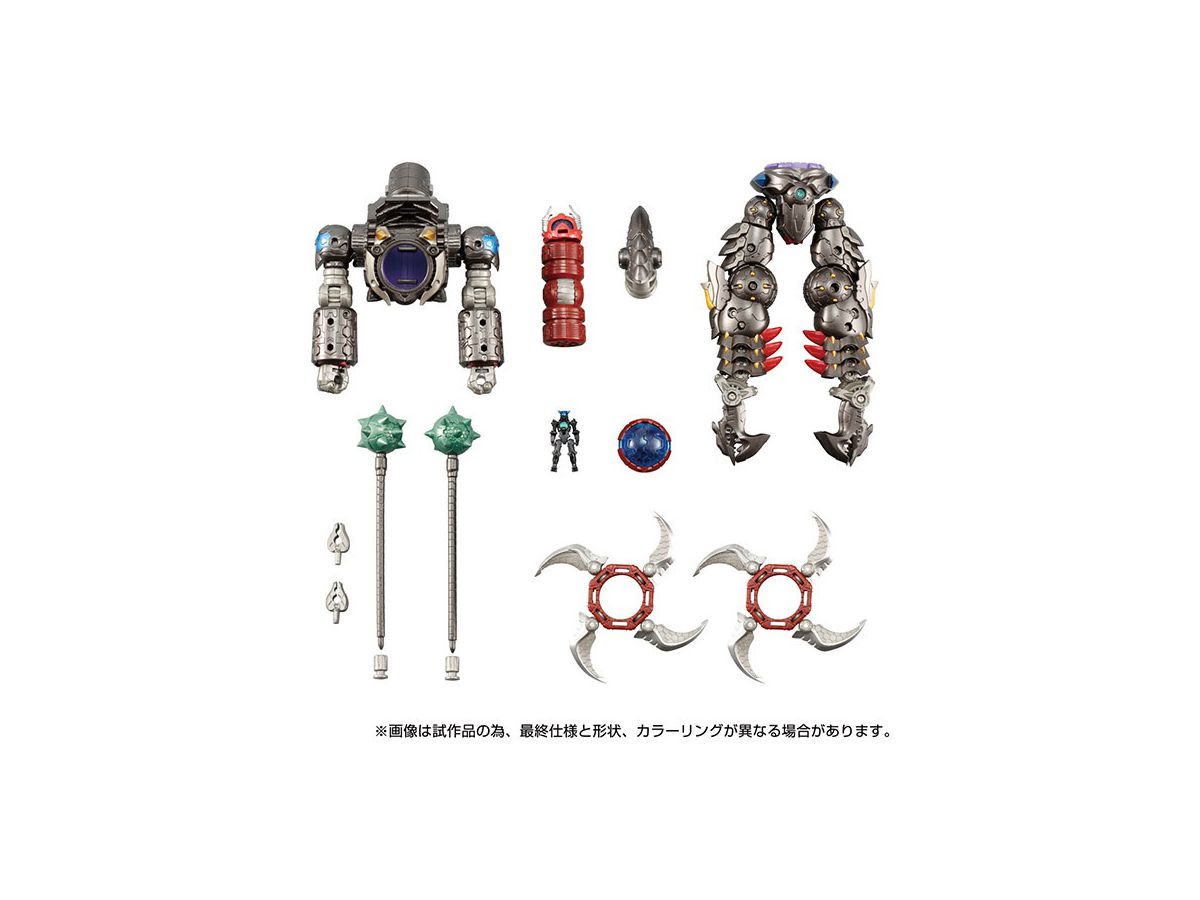 ・単体で3本の鉤爪を備えた巨大な腕ユニットに変形、既発売のワルダロス<ギガンター>と融合合体し強化させる機能も搭載。