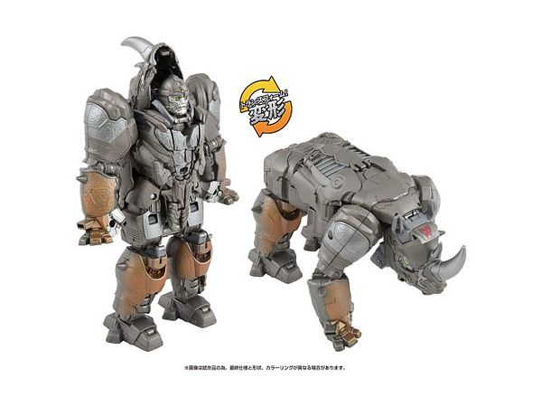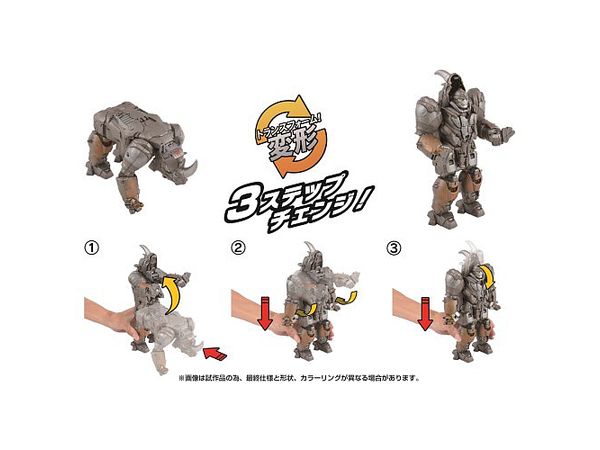 パ!パ!パっ!と3回のアクションでライノックスがビーストモードからロボットモードにトランスフォーム!