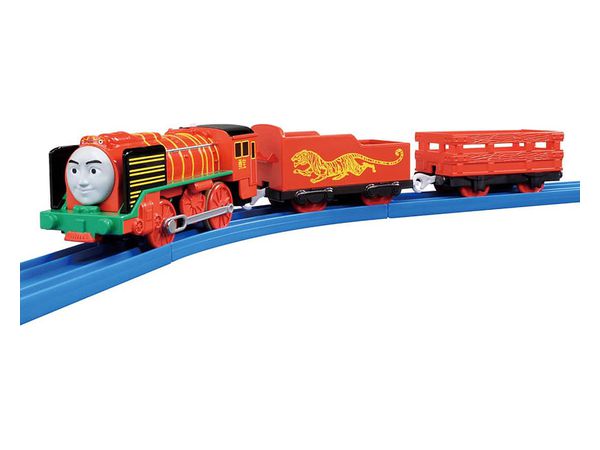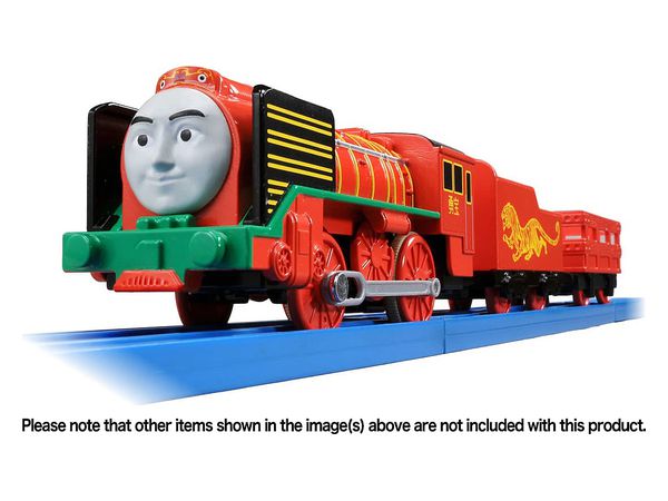 赤いボディの勇敢で親切な機関車で、煙突には龍の顔、炭水車には虎が描かれています。