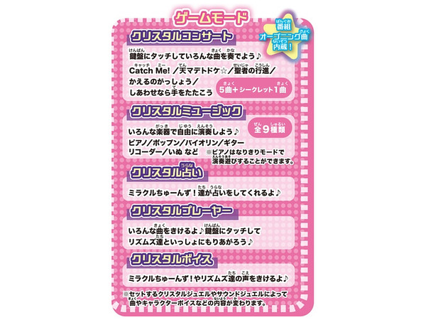 本体(1)、 クリスタルジュエル(カノン)(1)、 クリスタルジュエル(マイ)(1)、 クリスタルジュエル(フウカ)(1)、 クリスタルジュエル(アカリ)(1)、 クリスタルジュエル(ヒカリ)(1)、 取扱い説明書(A4/1CX1C)(1)