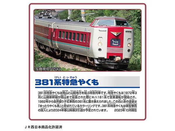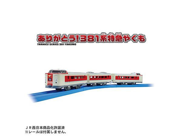 2024年春以降順次引退が予定されている381系特急やくもが、白と赤の塗装が施された「ゆったりやくも色」でプラレールに登場です。