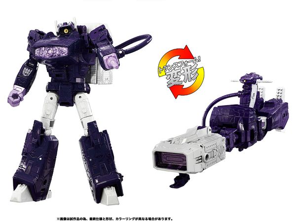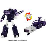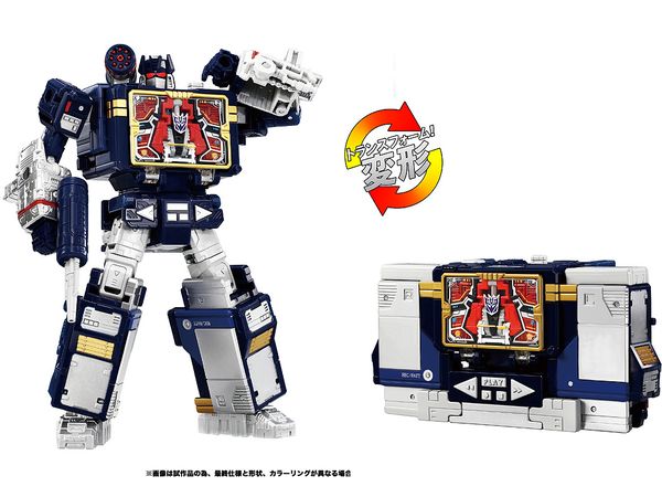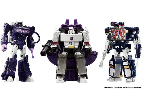 メガトロンはメタリック感をUPさせたシルバー塗装仕上げに、ショックウェーブはシージ版からよりアニメーション本編のカラーイメージに変更、サウンドウェーブもシルバー塗装とポイントとなる赤色塗装を増やしてリアルガジェット感を演出、胸部に収納可能なレーザービークが1体付属します。