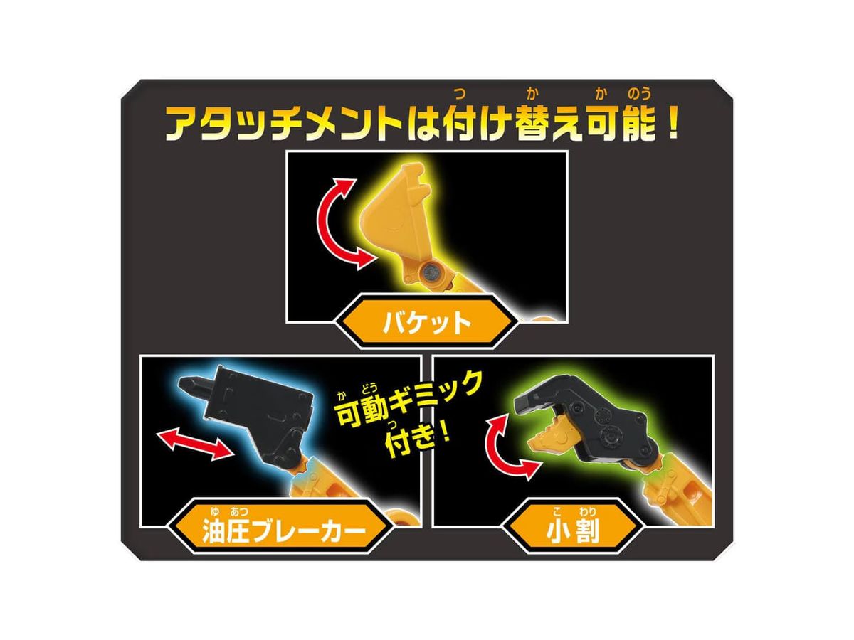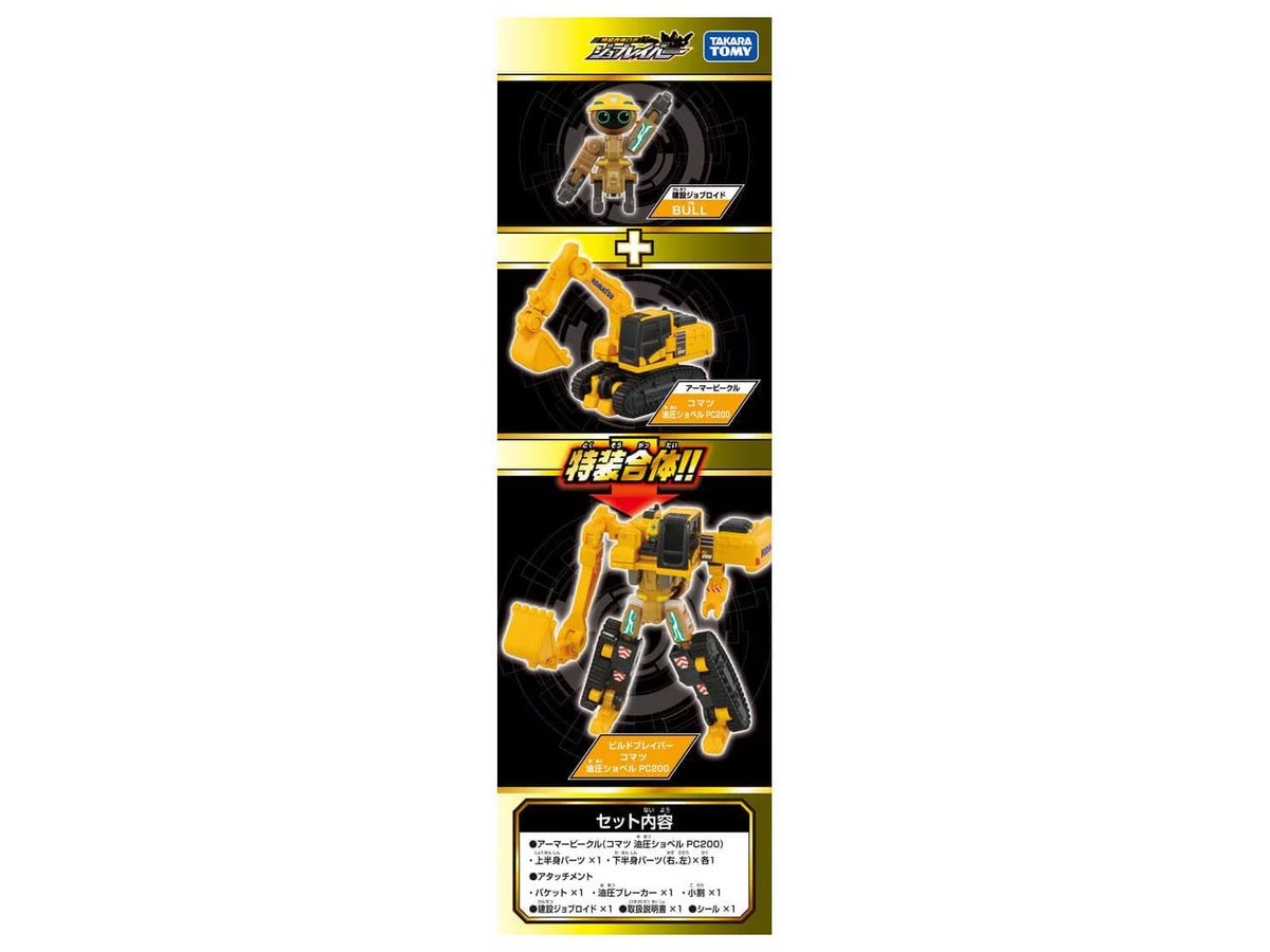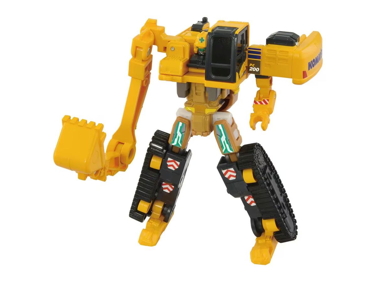 アーマービークル「コマツ 油圧ショベル PC200」が建設ジョブロイドと合体し、油圧ショベルのロボット「ビルドブレイバー コマツ 油圧ショベル PC200」になるぞ!