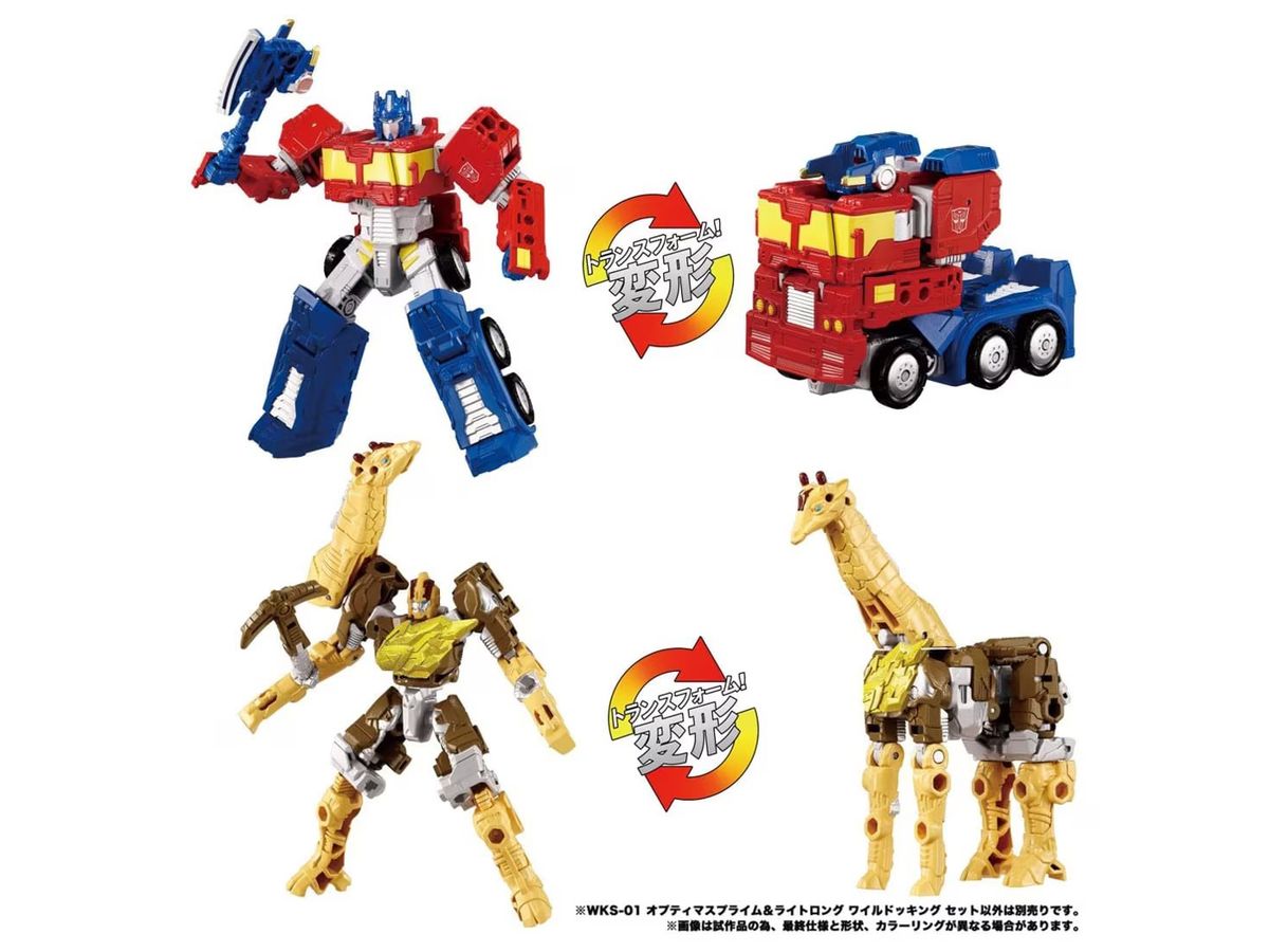 『トランスフォーマー ワイルドキング』で活躍するエナジーマスター「オプティマスプライム」とキリン型トランスフォーマーのエナジービースト「ライトロング」がワイルドッキングセットになって登場!「ライトロング」は雷の力であるライトニングエナジーを持つトランスフォーマーだ!