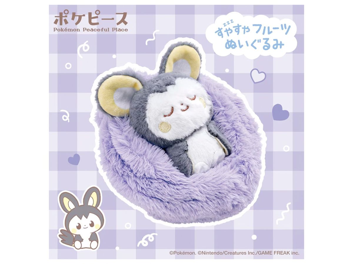 「ポケピース」からブルーベリーの上ですやすやねむるエモンガがかわいい「すやすやフルーツぬいぐるみ」が登場!