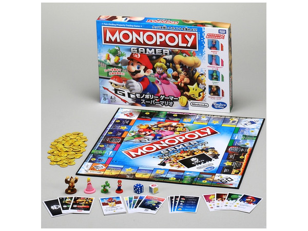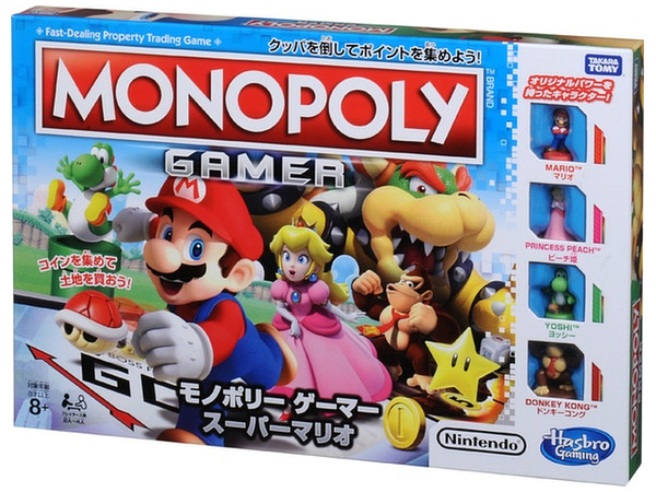 スーパーマリオの人気キャラクター、マリオ、ピーチ姫、ヨッシー、ドンキーコングによるモノポリー。