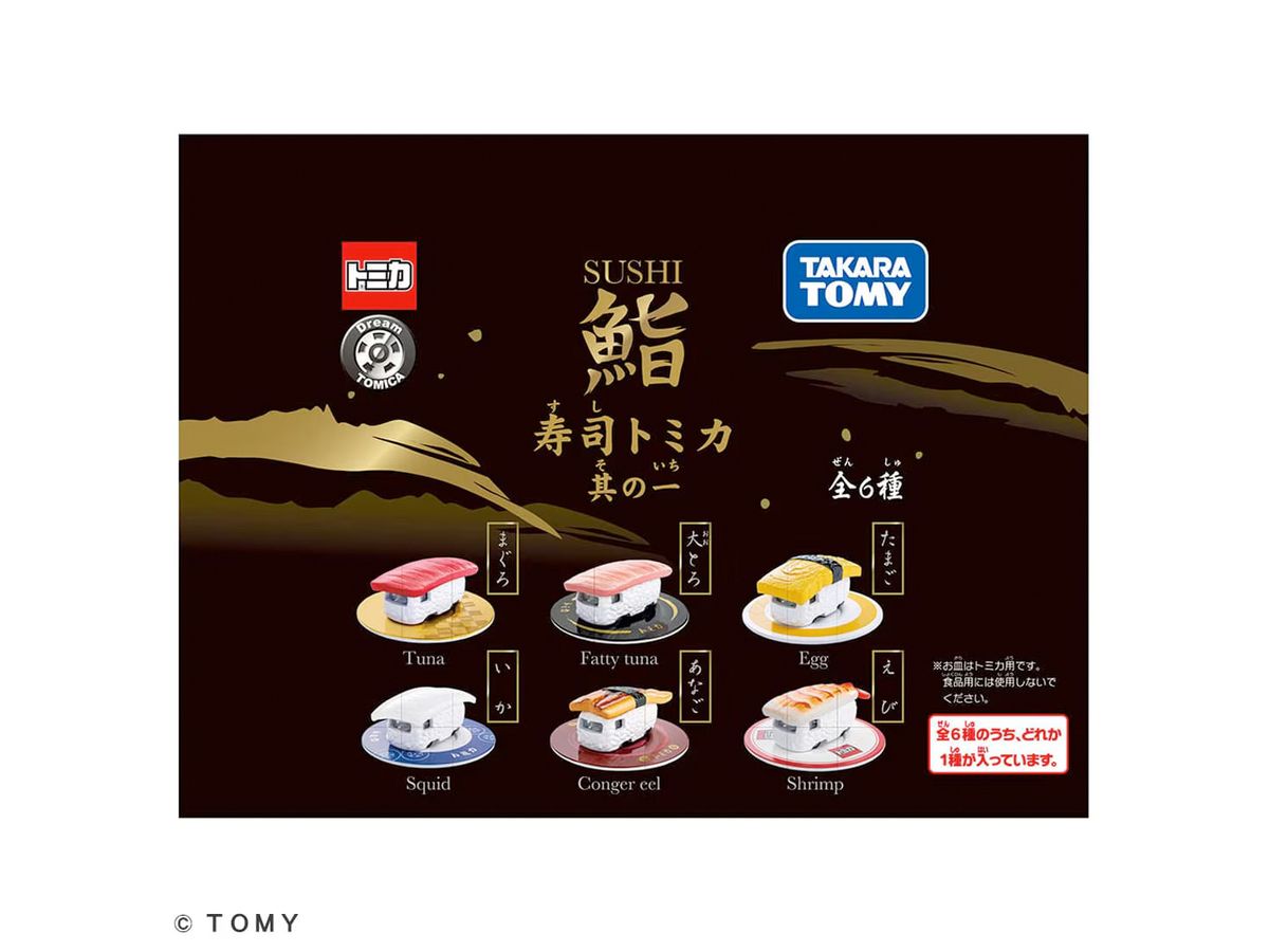 ネタは大とろ、まぐろ、たまご、いか、あなご、えびの全6種。