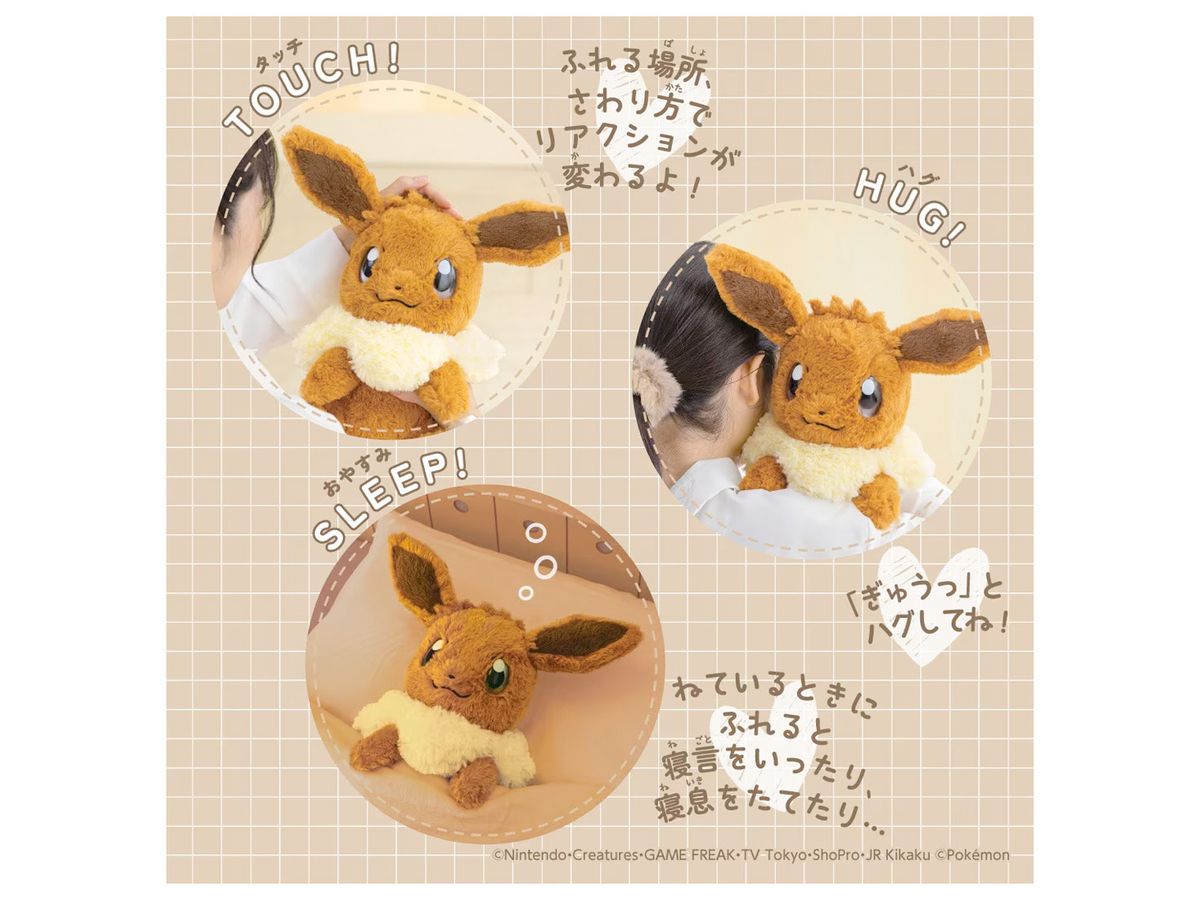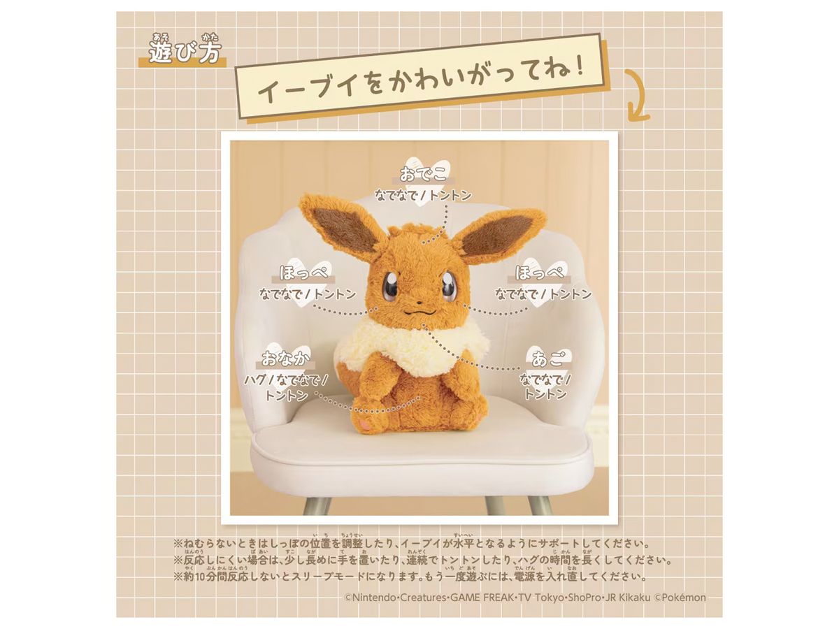 おでこ、ほっぺ、あご、おなかをなでたり、トントンするとイーブイが声でリアクション!