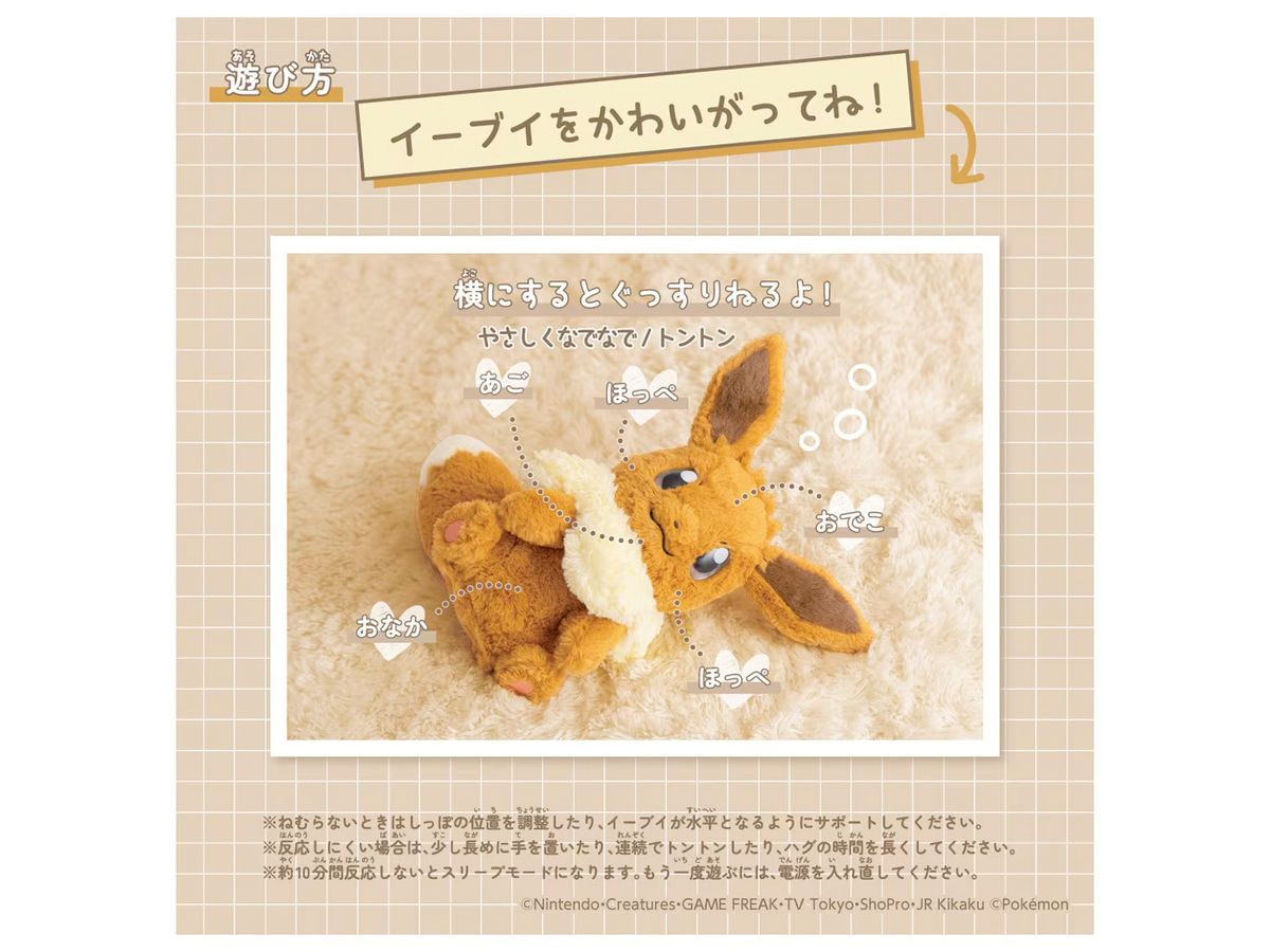 ※ねむらないときはしっぽの位置を調整したり、イーブイが水平となるようにサポートしてください。