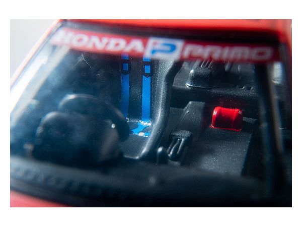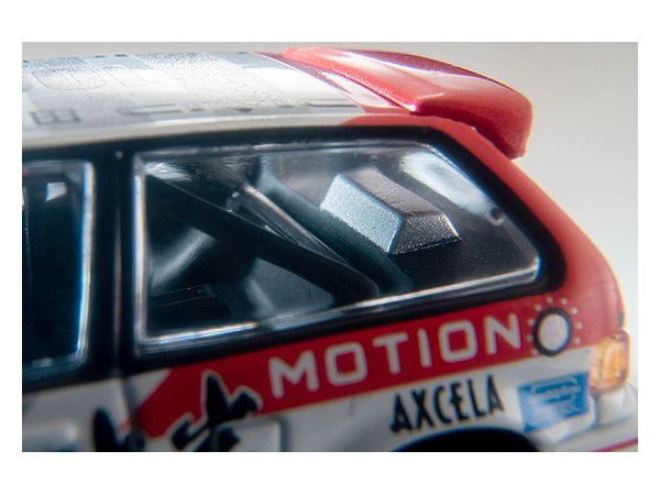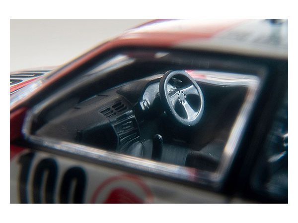 ホイール、大型スポイラー等の外装はもちろん、ロールケージを入れた内装に至るまで可能な限り再現。