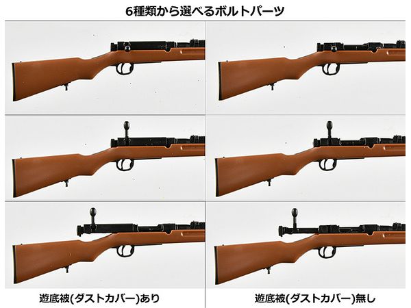 ・ボルトパーツは遊底被(ダストカバー)あり/無しと位置違いの6種から選択可能。