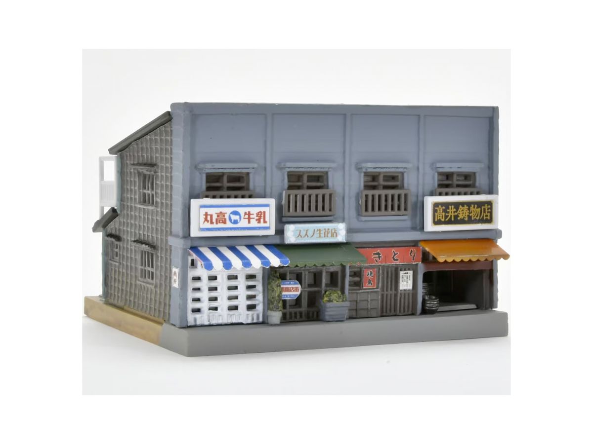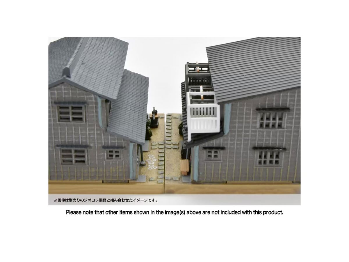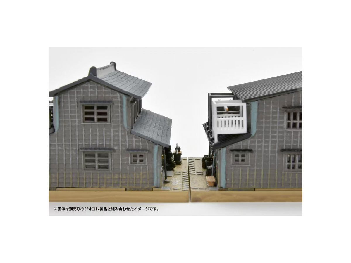 別売りの「建コレ054-1R 商店長屋A1R」と背中合わせに組み合わせて情緒豊かな路地裏を再現可能です。