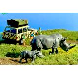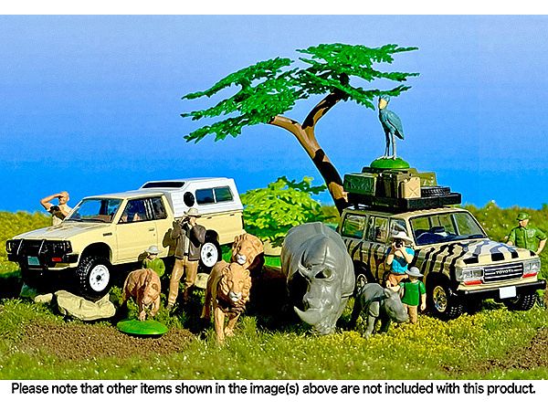 サイ、ハシビロコウ、ツアーガイドと観光客、アカシアの木が本製品に付属の役者たちです。