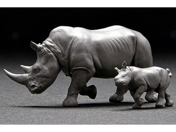力強いサイと羽毛が繊細なハシビロコウの造形は、我々をアフリカのサファリへと誘います。