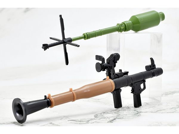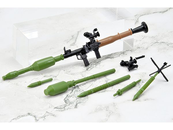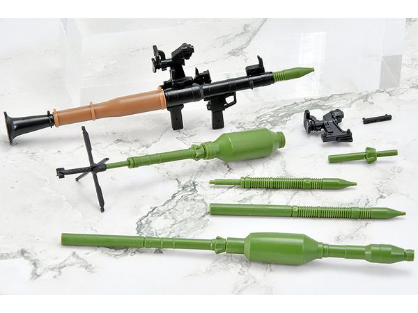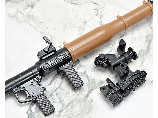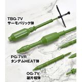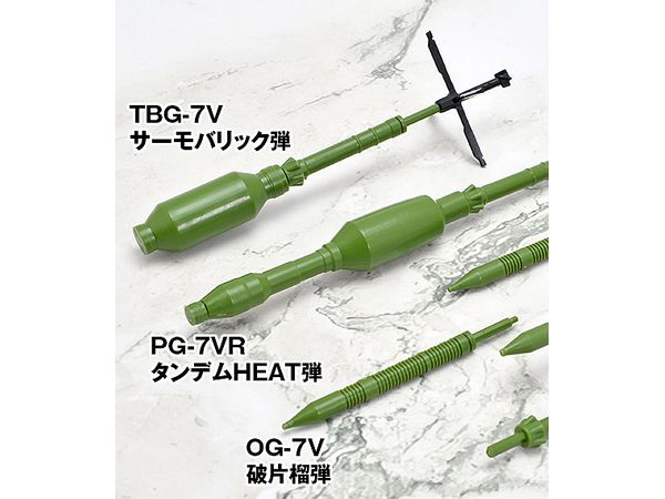 現用RPG7を象徴する3種類の弾頭(タンデム式HEAT弾、サーモバリック弾、破片榴弾)と、射程延伸用アタッチメント付き光学照準器を再現。