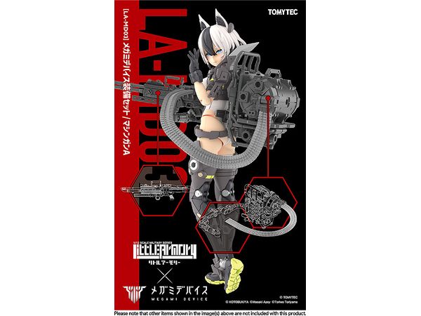 リアルミリタリーのディテールとSFメカデザインが融合した装備で、あなたのメガミを重火器オペレーターへとカスタマイズ。