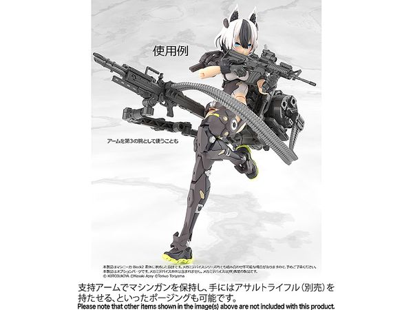・ 支持アームでマシンガンを保持し、手にはアサルトライフル(別売)を持たせる、といったポージングも可能です。