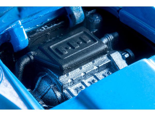 エンジンフードを開閉式とし、V型6気筒エンジンを確認できます。