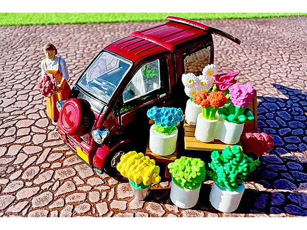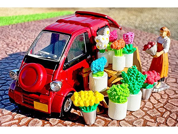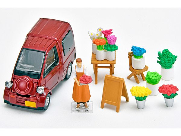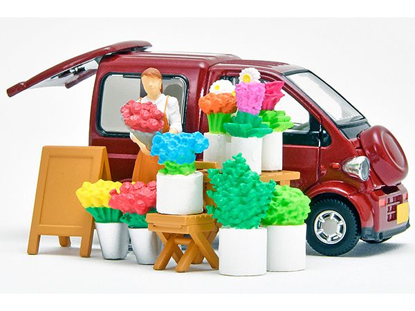 今回は移動販売の「花屋」がテーマのフィギュア・小物のセットです。