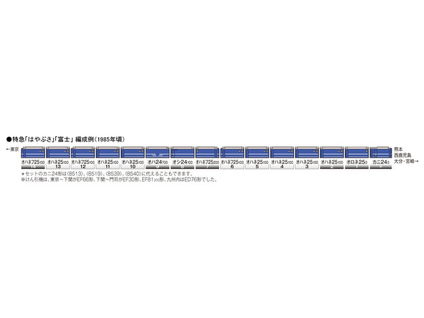 24系特急寝台客車は、14系特急寝台客車を基本として電源を電源車から供給する集中給電方式で誕生しました。