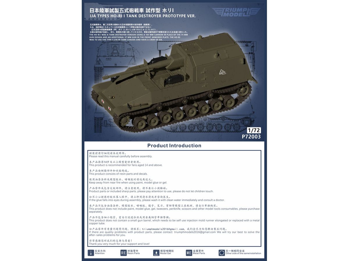 中国のトライアンフモデルより発売 1/72スケール3Dプリンター製キット