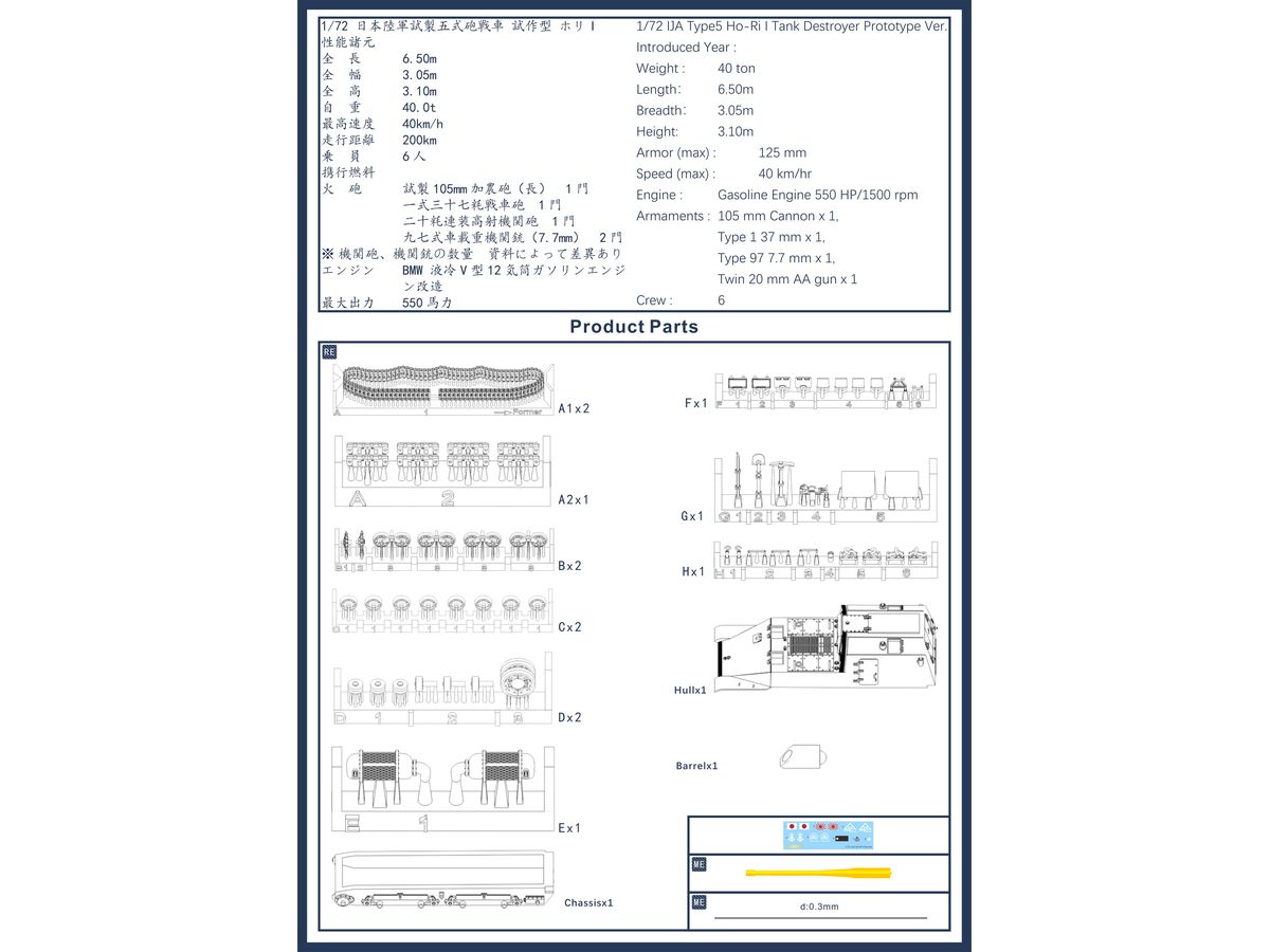 ・乗員:6名 ・主砲:105mm 試製十糎戦車砲(長) x 1