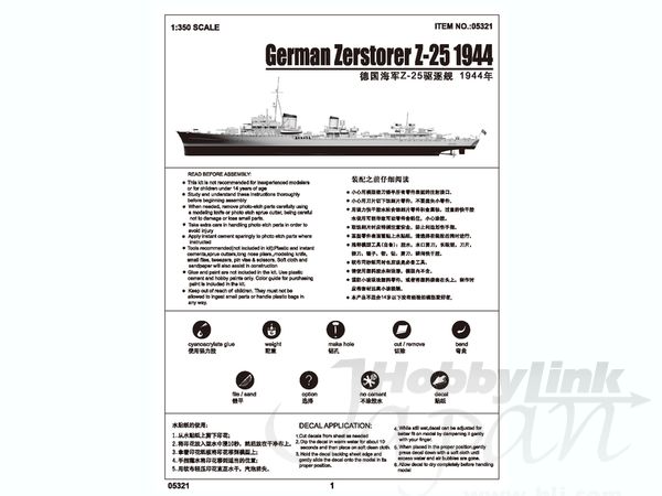 トランペッター1/350スケールプラスチックモデルキット、WWII独海軍Z級駆逐艦です。