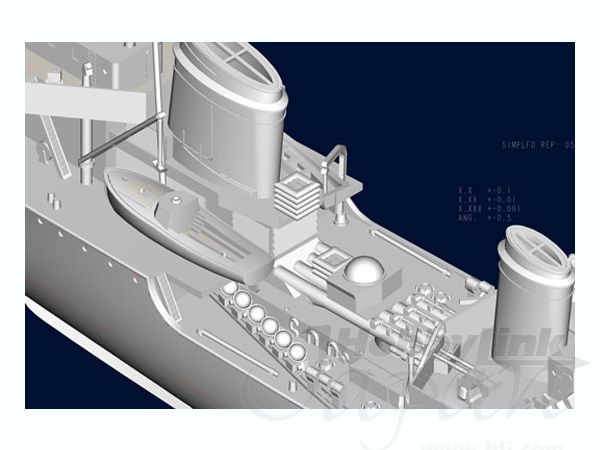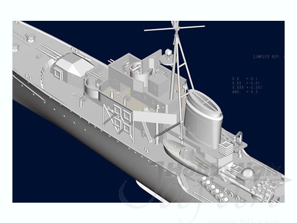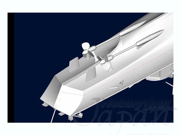 船体はスライド金型で一体成型されています。艦船模型の見所である上部構造物も精緻なモールドで再現。