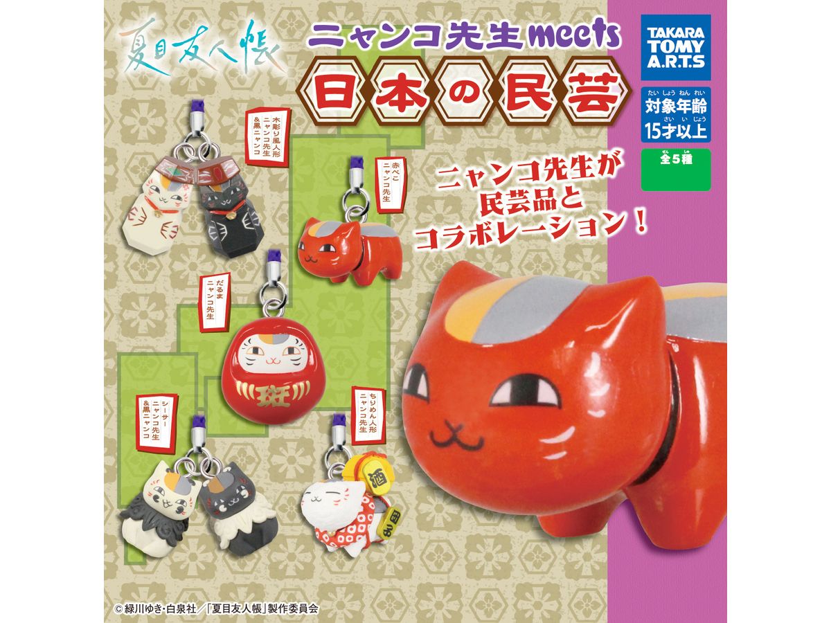 ニャンコ先生が日本全国の民芸品とコラボレーションして、ありそうでなかった(!?)根付けマスコットになりました。