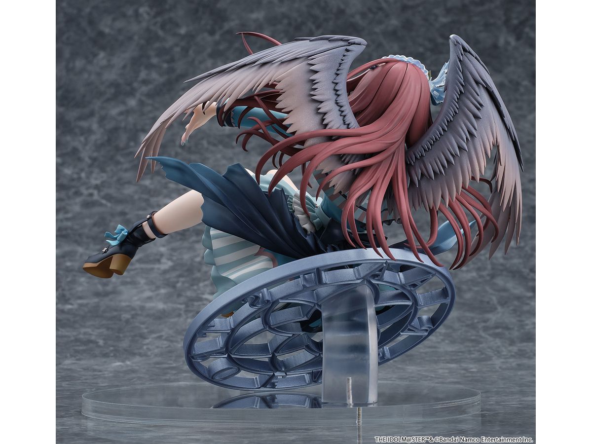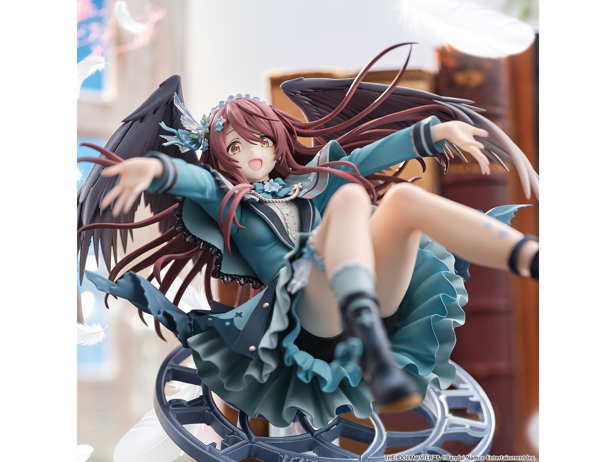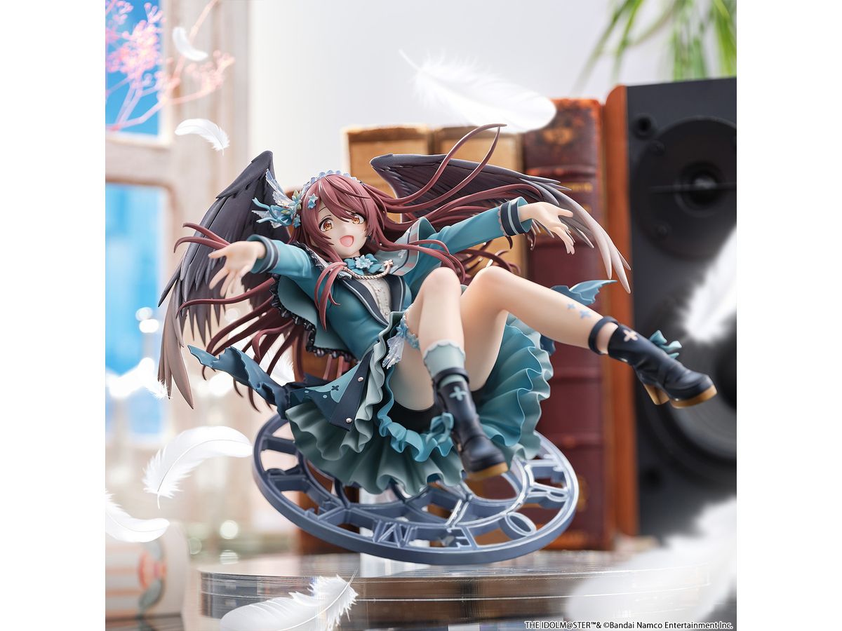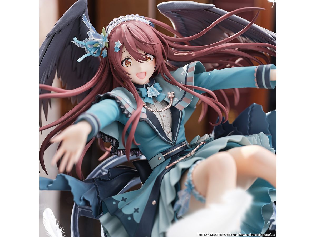 髪はふわっと広がるシルエットでボリューム感を持たせ、毛先や毛束の流れまで丁寧に造形し、羽にはパールとラメで塗装を行い、きらめく高級感を演出しております。