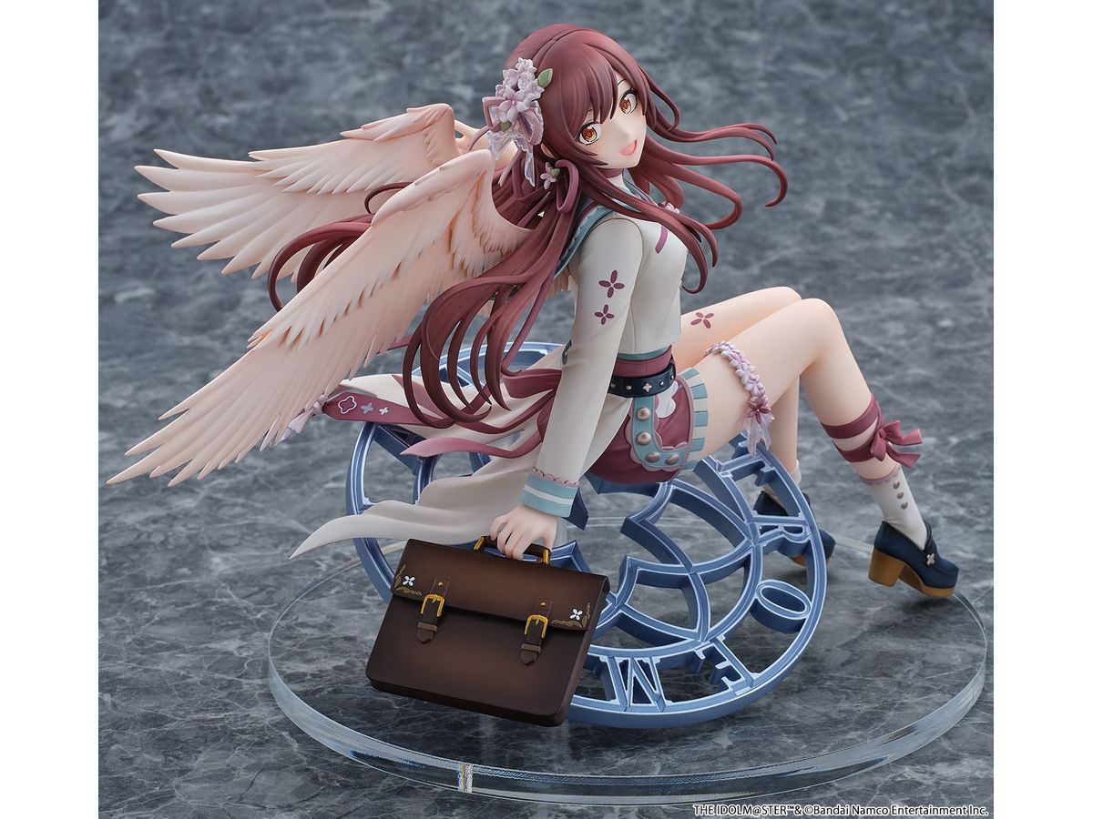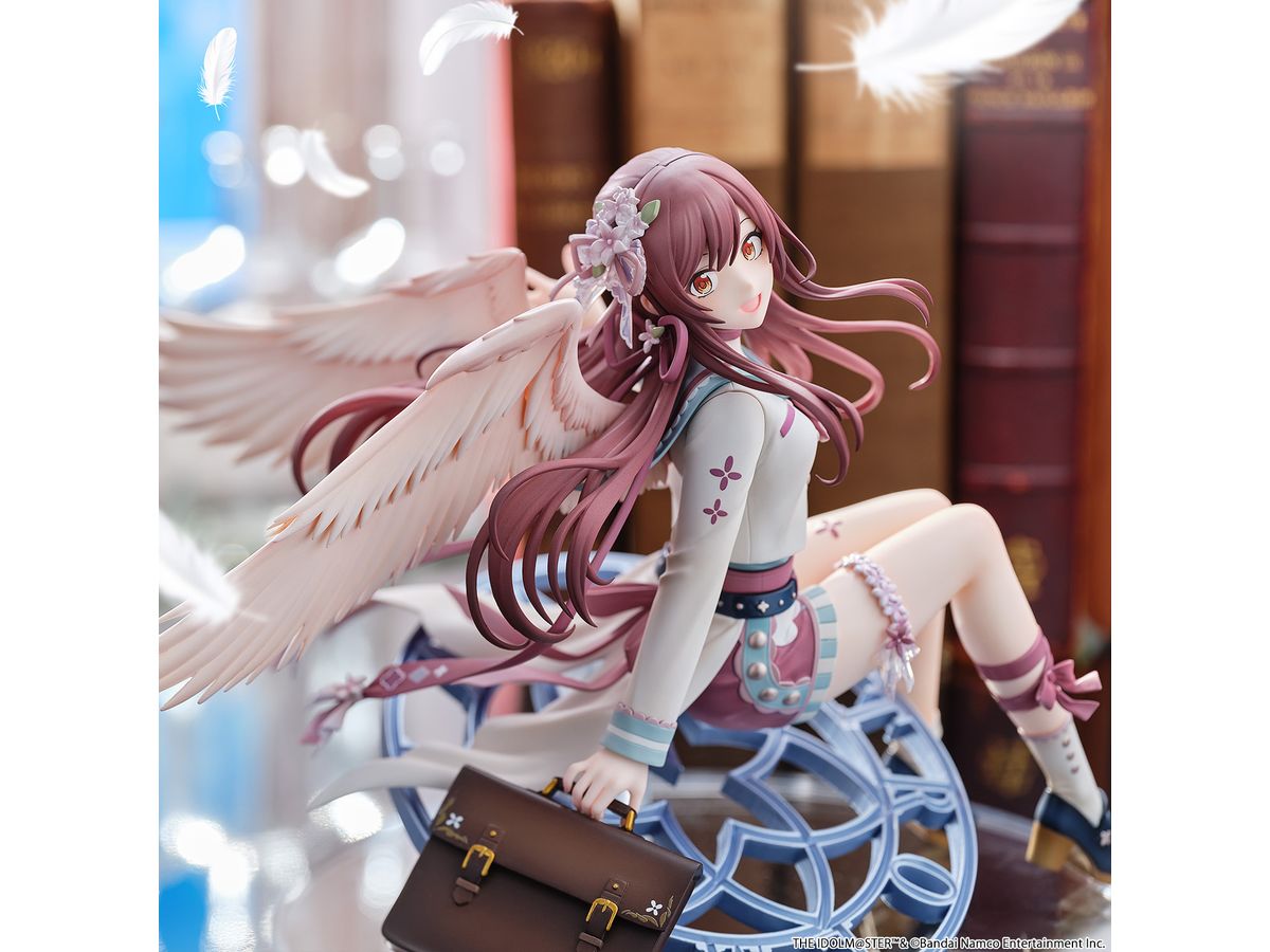 羽にはパールとラメで塗装を行い、きらめく高級感を演出し、髪やスカートは広がりを持たせて立体的に仕上げ、躍動感のある造形となっております。