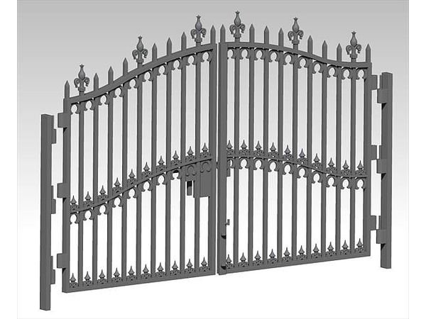 ヨーロッパなどで多く見られる、両開き式の格子型門扉を再現する3Dプリント製アクセサリーパーツセットです。