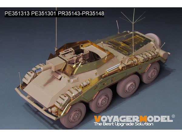 第二次大戦ドイツ軍の8輪重装甲偵察車Sd.Kfz.234/3シュツンメルの細部を精密に再現するディテールアップセットです。