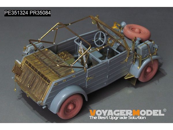 北アフリカ戦線に派遣されたドイツ・アフリカ軍団が運用した熱帯地仕様キューベルワーゲン82型のアップグレードパーツセットです。