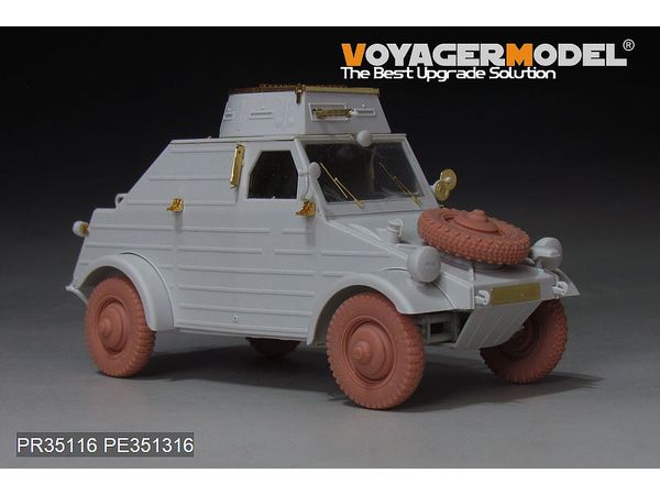 第二次大戦のドイツ軍が全戦線で運用した汎用乗用車キューベルワーゲン82型のタイヤを再現する3Dプリント製ディテールパーツセットです。