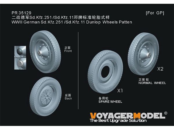 1/35 WWII ドイツ Sd.Kfz.251/Sd.Kfz.11ハーフトラック ダンロップ社標準タイヤセット(汎用 3個入)