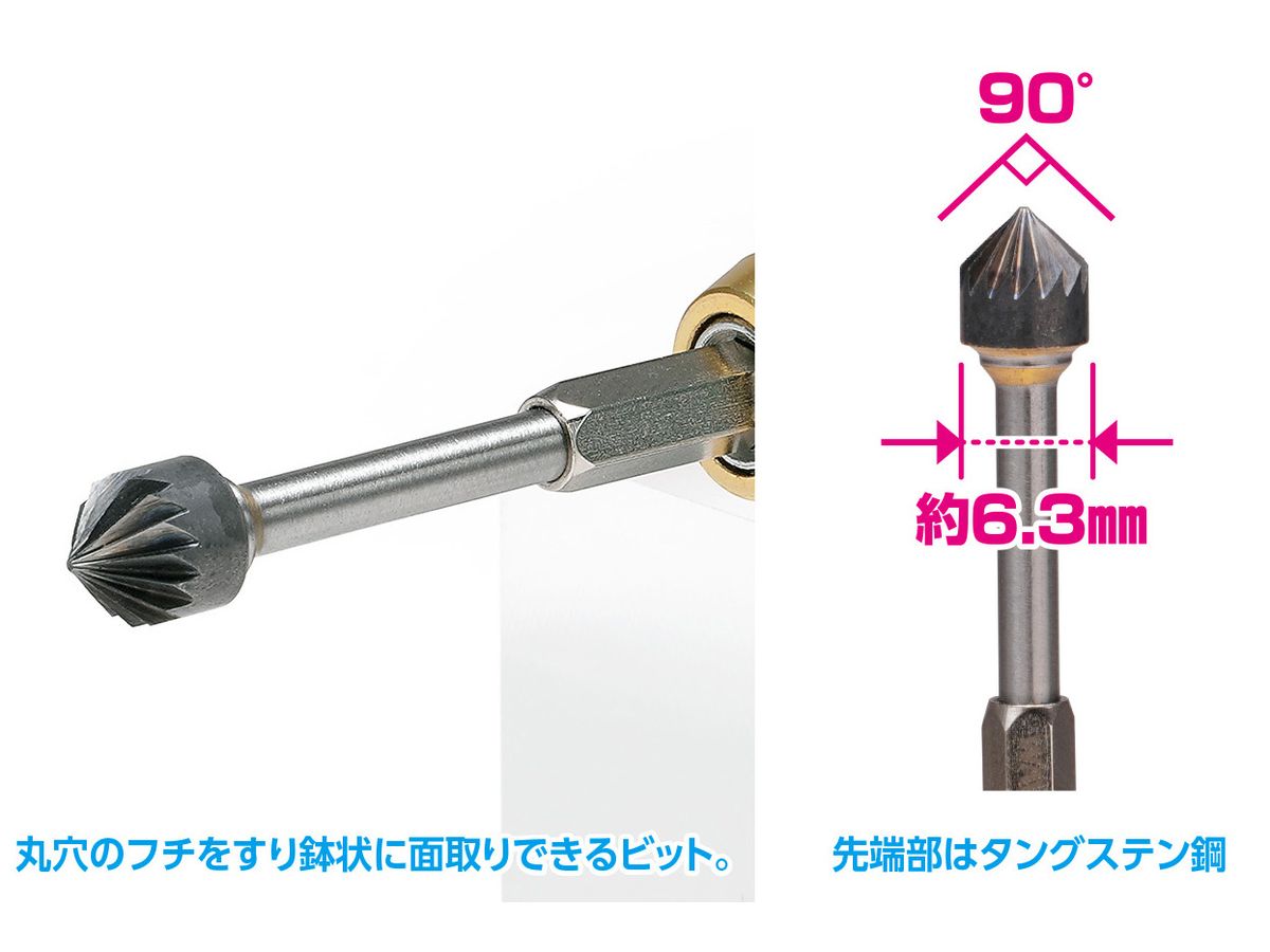 ・丸穴のフチをすり鉢状に面取りできる、HGワンタッチピンバイス専用ビット。