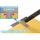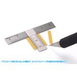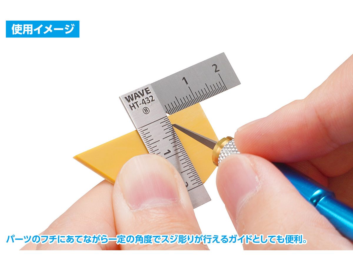 ・短く取り回しやすいため、パーツのフチにあてながら一定の角度でスジ彫りが行えるガイドとしても便利です。