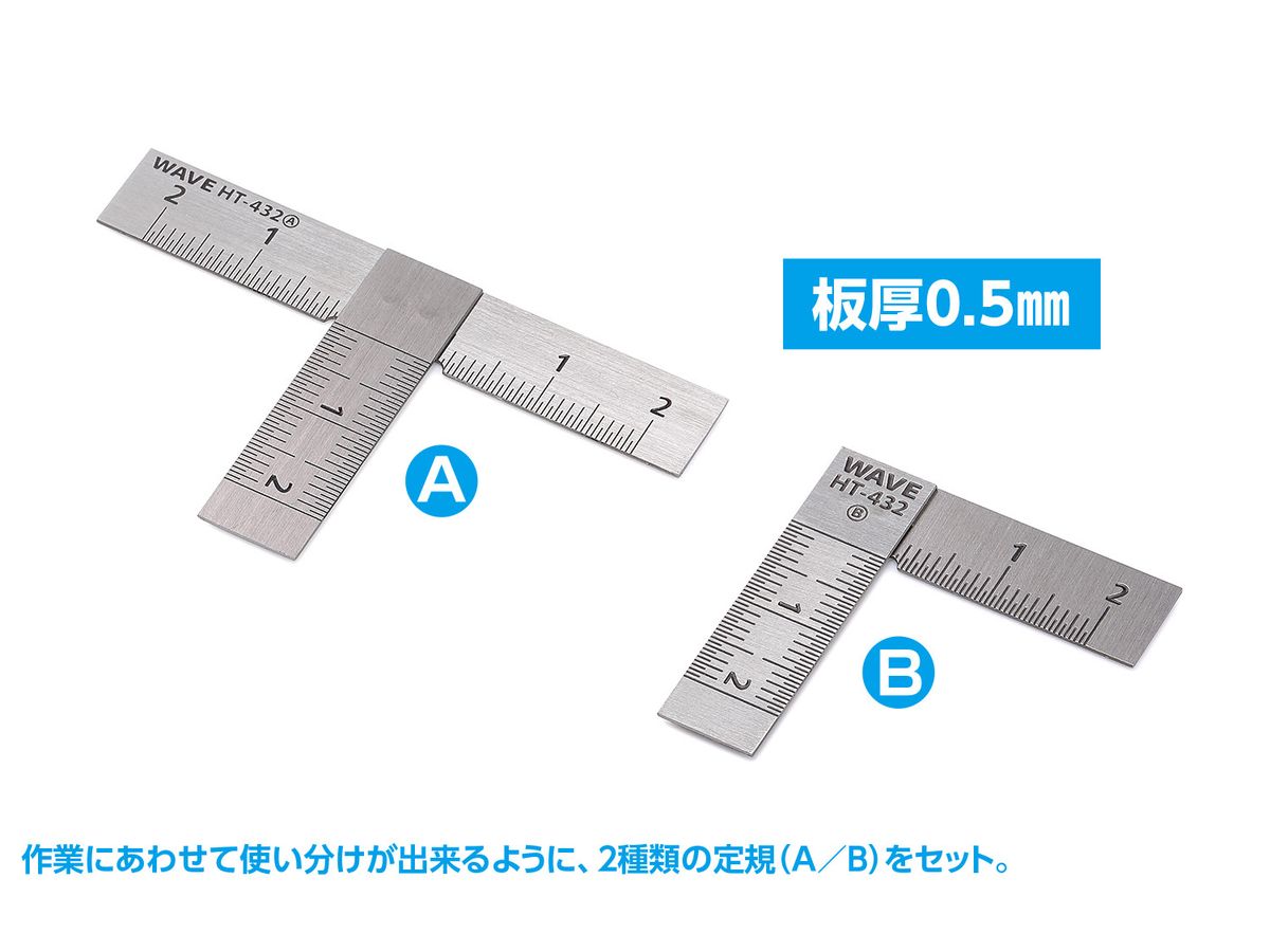 ・作業にあわせて使い分けが出来るように、2種類の定規(A/B)をセット。