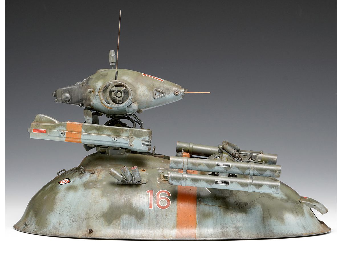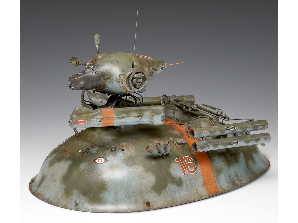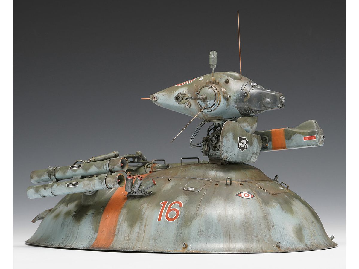 ホバー駆動の装甲車両に感知ユニットであるノイスポッター頭部を搭載した無人偵察機オスカル。